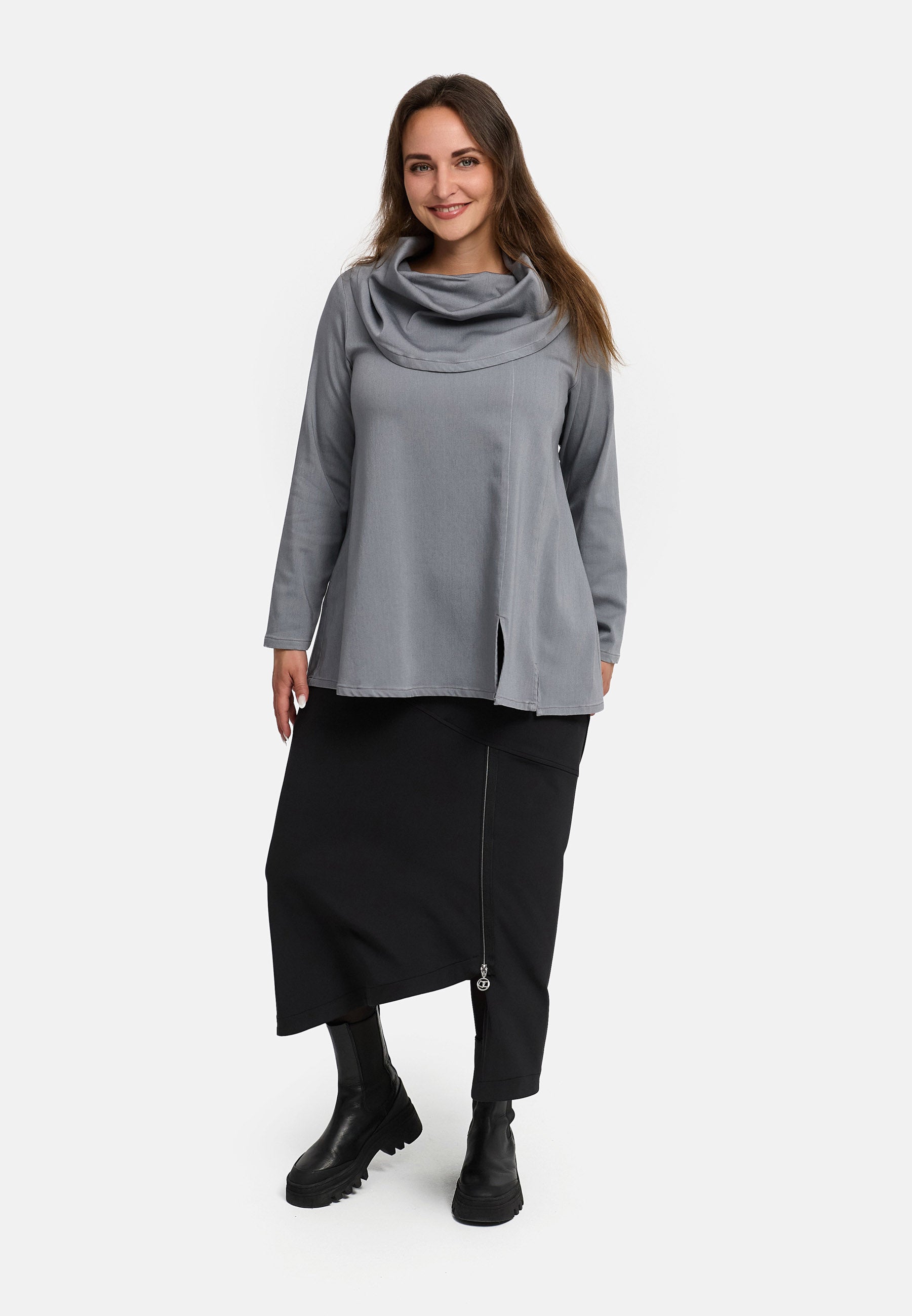 Camisa 'Juline' – Denim con elástico en línea A fluida